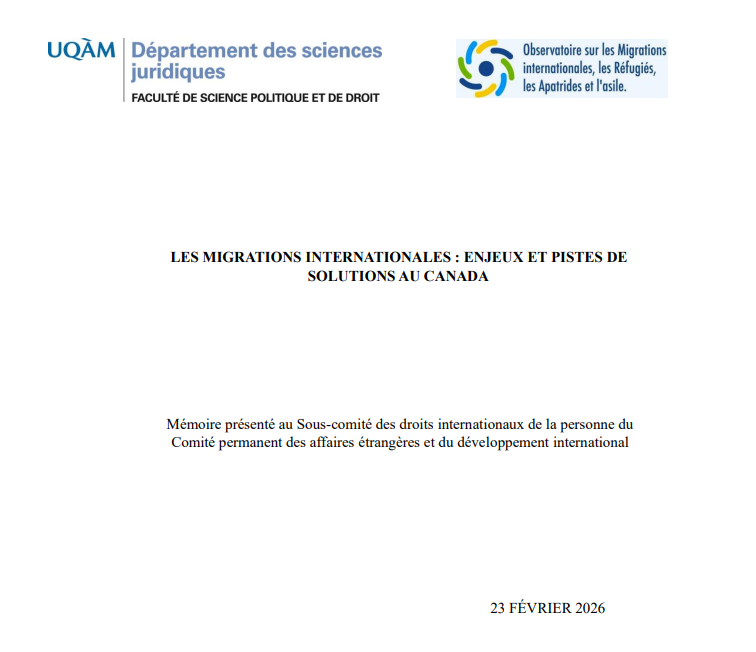 L’OMIRAS (Observatoire sur les Migrations Internationales, les Réfugiés, les Apatrides et l’asile) a été invité au Parlement fédéral le 23 février 2026. Voici le mémoire présenté au Sous-comité des droits internationaux de la personne du Comité permanent des affaires étrangères et du développement international avec des recommandations aux autorités par Ndeye Dieynaba Ndiaye, co-directrice de l’OMIRAS.