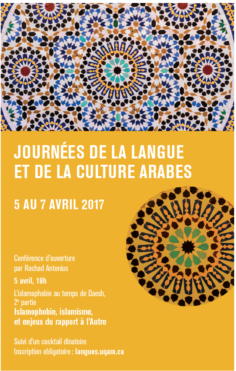 Plusieurs départements et institutions de recherche de l’UQAM se sont unis afin d’organiser les Journées de la langue et de la culture arabes qui auront lieu à l’UQAM, du 5 au 7 avril prochains. L’événement, qui est une initiative de l’École de langues, vise à faire découvrir la grande diversité et la richesse culturelle du monde arabe, ainsi qu’à favoriser l’échange interdisciplinaire, interdépartemental et même, interuniversitaire entourant les enjeux actuels de cette région du monde.