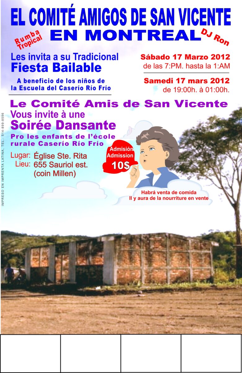 Le comité des amis de Saint Vicente nous invite samedi soir à une soirée dansante au profit des enfants de l’école St Vicente au Salvador. L’argent ainsi récolté reviendrait directement aux enfants de l’école par l’achat de matériels scolaires, de maintenance (comme le transport), et qui permettraient d’améliorer leurs quotidiens. Cette école avant d’être aidée par l’association des amis de Saint Vicente comptait 38 enfants (en décembre 2009), elle en compte aujourd’hui (soit presque 3 ans plus tard) 62 enfants.